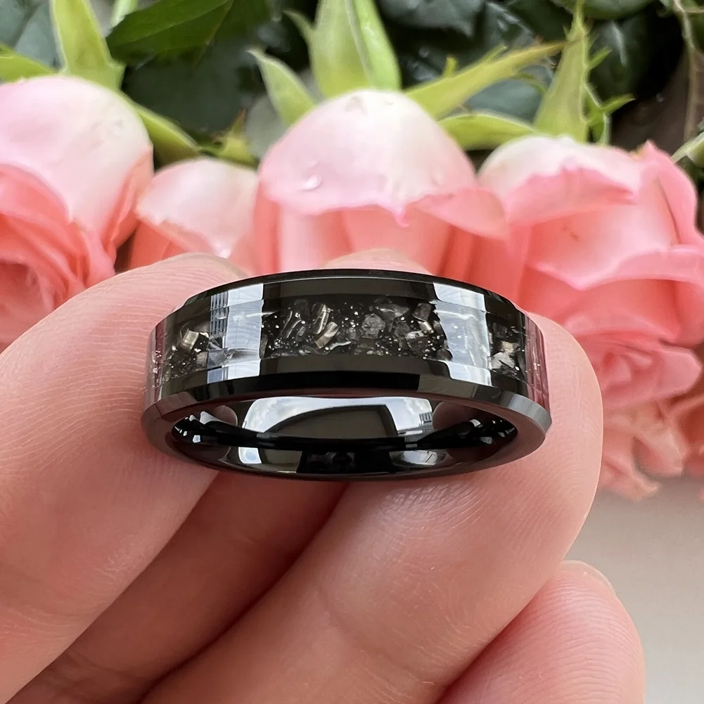 Coolstyle Jewelry 6mm Beveled Edges Mens Womens Fashion Engagement Wedding Band Titanium Chip Inlay Black Tungsten Carbide Rings